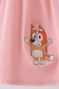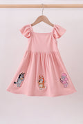 Pink character embroidery flutter sleeve dress