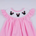 Pink character hand smocked dot ruffle dress