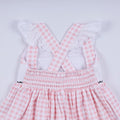 Meet the dress that's as charming as it is twirl-worthy! This pink gingham ruffle dress features adorable character details and hand-smocked craftsmanship that adds texture and personality. The playful ruffles dance with every movement, while the classic gingham pattern keeps things sweet and timeless. Perfect for special occasions or everyday adventures, this dress combines whimsical character charm with quality construction that parents love. A delightful choice for little ones who love to express their unique style.