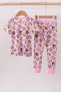 Cozy up in this playful pink bamboo pajama set, featuring delightful character prints that bring a touch of fun to bedtime. Made from soft, breathable bamboo fabric, it keeps you comfortable and cool all night long. Perfect for relaxing or dreaming big with a smile!