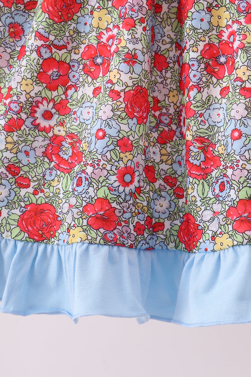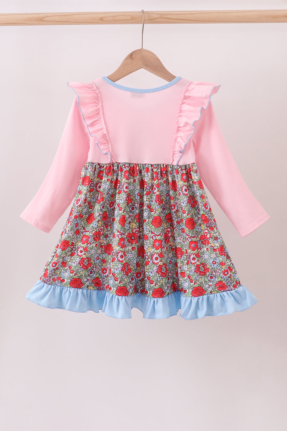 Pink christmas tree applique ruffle dress