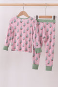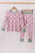 Pink christmas tree bamboo pants set
