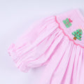 Pink christmas tree hand smocked ruffle pants set