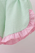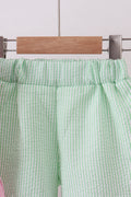 Adorable meets comfortable in this charming shorts set! Featuring delicate clover bow embroidery and textured seersucker fabric, it's perfect for warm weather adventures. Playful ruffles add a touch of whimsy while the soft, breathable material keeps you cool and comfy all day long. Ideal for little ones who love standing out with style and personality.