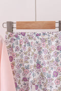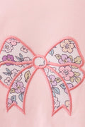 Pink floral bow applique pants set