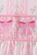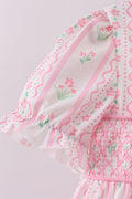 Pink floral bow smocked ruffle pants set