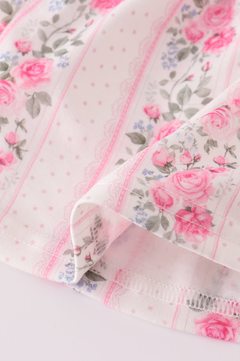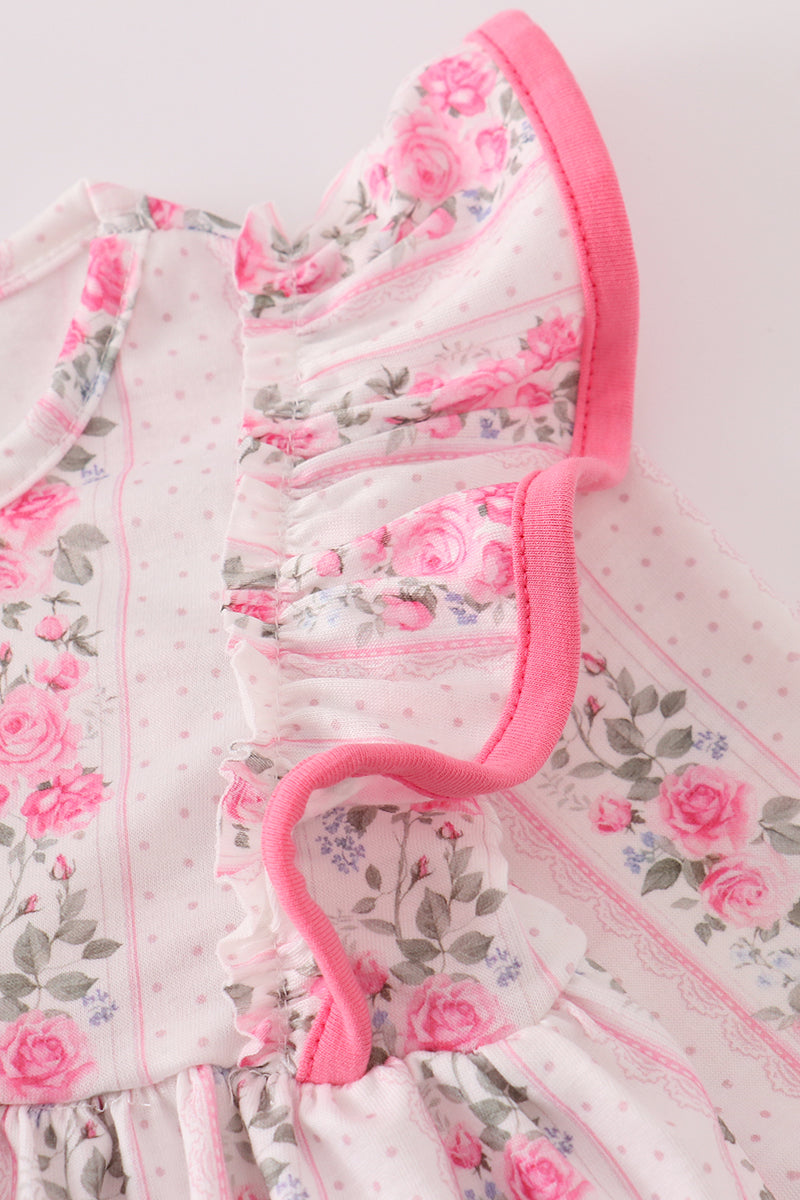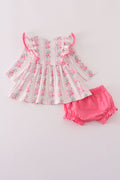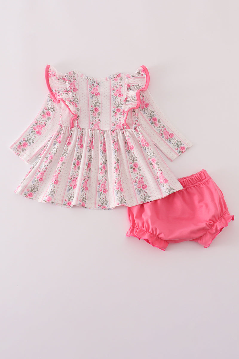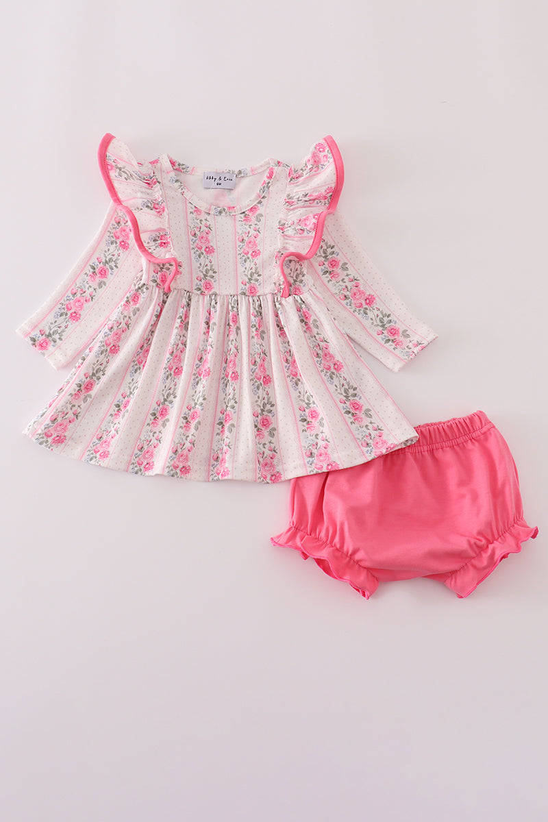 Pink floral print ruffle bloomer set