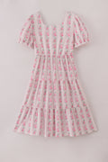 Pink floral print tiered mom dress