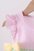 Pink flutter trim seersucker ruffle bubble