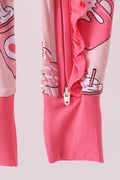 Snuggle up in adorable style with this pink heart print bamboo romper! Crafted from soft, breathable bamboo fabric, it's perfect for cozy nights in or lazy weekend mornings. The charming heart print brings a playful touch, while delicate ruffles add extra sweetness. The convenient zipper makes getting dressed a breeze. Gentle on sensitive skin and eco-friendly, this romper combines comfort with cuteness for the ultimate pajama experience.