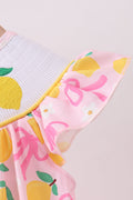 Brighten your wardrobe with this charming pink lemon smocked ruffle dress! Featuring delicate smocking at the bodice for a flattering fit and playful ruffled details that dance with every move, this piece brings whimsical style to any occasion. The soft pink hue paired with cheerful lemon accents creates a fresh, summery vibe perfect for garden parties, casual outings, or making a statement. Comfortable and eye-catching, it's the dress that puts a smile on your face and spring in your step.