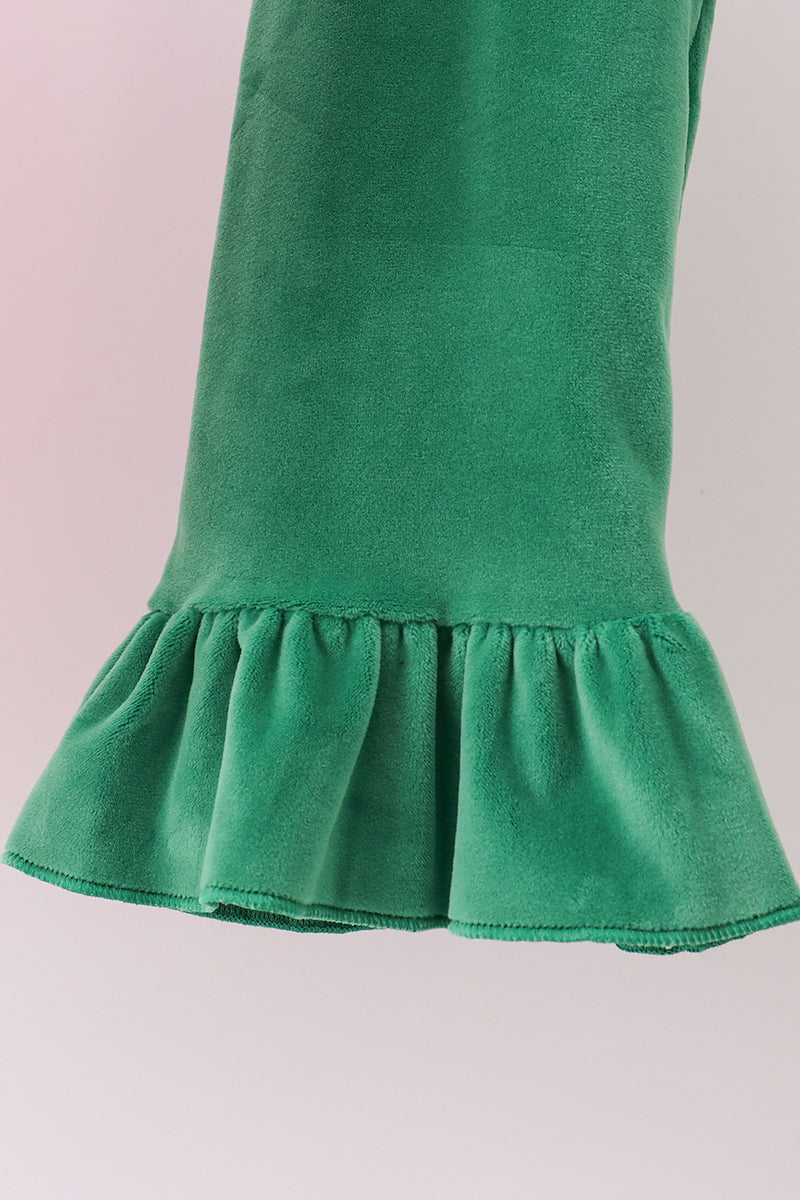 Bring whimsy and comfort to any occasion with this Pink Nutcracker Embroidery Velvet Ruffle Pants Set. Crafted from soft velvet, the set features charming nutcracker-themed embroidery and playful ruffles that add a festive touch. Perfect for cozy days or spirited celebrations, these pants combine style and ease for a delightful wardrobe upgrade.