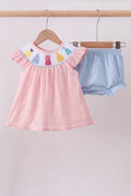 Twirl into enchantment with this darling pink princess smocked bloomer set! Featuring delicate smocking details and a soft, dreamy pink hue, this two-piece ensemble captures pure fairy-tale magic. The comfortable bloomers pair perfectly with the coordinating top for effortless playtime elegance. Ideal for dress-up adventures, special occasions, or simply channeling your inner royalty. Watch her confidence bloom as she becomes the princess of her own story!