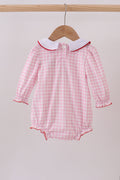 Bring festive fun to your little one’s wardrobe with this Pink Santa Claus Embroidery Gingham Bubble. Featuring charming Santa embroidery on a soft pink gingham fabric, this playful bubble romper adds holiday cheer to any occasion. Its cozy design ensures comfort while the detailed stitching gives it a whimsical touch, perfect for joyful celebrations and memorable photos.