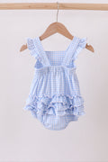 Bring a touch of winter whimsy to your little one’s wardrobe with this premium blue gingham bubble romper. Adorned with charming snowman embroidery and playful ruffle details, it combines cozy style with festive fun. Perfect for chilly days, this delightful outfit keeps your child comfortable while standing out in the cutest way possible.