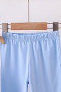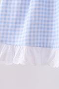 Premium blue snowman embroidery gingham ruffle pants set