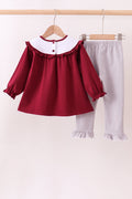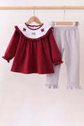 Premium Maroon Georgia bulldog bow embroidery ruffle pants set
