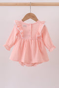 Wrap your little one in soft luxury with this premium pink ruffle muslin bubble. The gentle, breathable muslin fabric keeps your baby cozy, while the playful ruffle details add a charming touch. Perfect for both everyday comfort and special moments, this bubble outfit blends adorable style with ultimate softness.