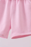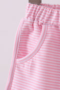 Premium Pink&white stripe bow shorts