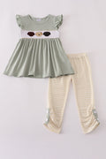 Puppy embroidery smocked ruffle pants set