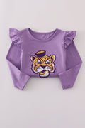 Show your team spirit with this playful purple LSU applique bow skorts set. Combining comfort and style, it features a cute bow detail and sporty skorts perfect for game day or casual outings. Cheer on your favorite team while staying effortlessly chic!