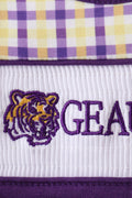 Purple LSU GEAUX smocked ruffle bubble