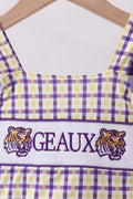Purple LSU GEAUX smocked swimsuit