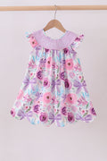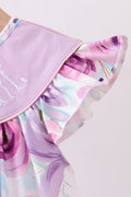 Purple MAMA'S GIRL embroidery floral ruffle dress