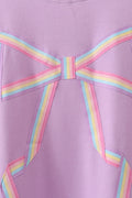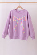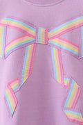 Celebrate togetherness in matching style with this charming purple sweatshirt, perfect for you and your little one. Each piece features a hand-sewn bow detail that adds a touch of whimsy, while patriotic accents bring spirited flair to your coordinated look. Crafted with care and designed for comfort, this mom & me essential makes a sweet statement about bonding through fashion. Wrap yourselves in purple pride and playful patriotism!