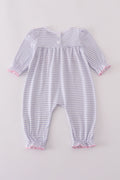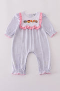 Purple puppy french knot stripe romper