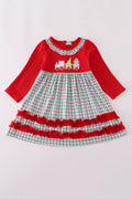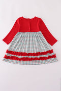 Red gingerbread applique ruffle dress