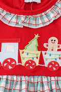 This red gingerbread applique ruffle dress brings festive charm with a playful twist. Featuring delicate gingerbread-themed appliques and flirty ruffles, it’s perfect for spreading holiday cheer in style. Lightweight and fun, this dress adds a touch of sweetness to any special occasion or festive gathering.