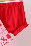 Adorable red heart and bow print bloomers that bring charm and personality to playtime! This sweet two-piece set features a cheerful design perfect for little ones who love standing out. Soft, comfortable fabric keeps kids happy all day long, whether they're playing, exploring, or just being their playful selves. The classic bloomer silhouette offers easy movement and a timeless look that pairs beautifully with any outfit. A delightful choice for parents seeking quality pieces with personality!