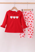 Adorable red heart french knot ruffle pants set that's pure sweetness! This charming two-piece features delicate french knot detailing and playful ruffles that twirl with every move. Perfect for little ones who love standing out with personality and style. The soft, comfortable fit keeps them happy all day long, whether they're playing, exploring, or stealing hearts wherever they go. A delightful choice for parents who want their kids dressed in something truly special and Instagram-worthy!