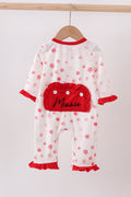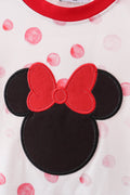 This red polka dot romper brings joy to any day with its playful character applique detail. Designed for comfort and style, it’s perfect for little ones to explore and play freely. The vibrant pattern and fun design add a cheerful touch to any outfit.
