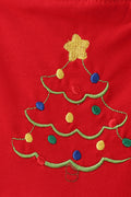 Red tree embroidery plaid jumpsuit set