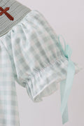 Adorable bubble romper featuring a charming smocked gingham design in soft sage tones. Perfect for little ones who love classic style with a modern twist! The smocking detail adds texture and visual interest, while the bubble silhouette creates a sweet, vintage-inspired look. Comfortable and cute for playdates, family gatherings, or everyday adventures. A timeless piece that celebrates joyful childhood moments.