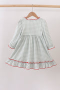 Step into playful charm with this Sage Ribbon Bow Gingham Ruffle Gown Dress. Featuring a delicate gingham pattern, a sweet sage ribbon bow, and cascading ruffles, this dress brings whimsical elegance to any occasion. Its light, airy fabric allows freedom of movement while the ruffles add a flirty touch, perfect for twirling through garden parties or special days out. Embrace a flirty, fun style with this effortlessly cute gown.