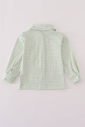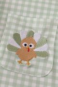 Add a touch of whimsy to your wardrobe with this sage gingham button-down shirt, featuring charming turkey embroidery. Its classic check pattern pairs perfectly with the playful detail, making it a fun and stylish choice for casual days or festive gatherings. Comfortable and eye-catching, this shirt brings a fresh twist to your everyday look.