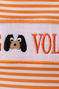 Cheer on the Vols in style with this playful smocked stripe jon jon! Featuring classic Tennessee colors and a charming striped design, this romper combines comfort with spirited school pride. The smocked detailing adds a touch of Southern charm, while the relaxed fit keeps little ones cool and comfortable all day long. Perfect for game days, casual outings, or showing your Volunteer spirit wherever you go. Go Vols!