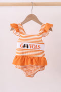 Show your Volunteer spirit in style with this Tennessee Go Vols smocked stripe swimsuit. Featuring classic striped detailing and a flattering smocked bodice, this one-piece combines comfort with team pride. Perfect for poolside cheers, beach getaways, or game day celebrations. The stretchy, supportive fit keeps you confident whether you're diving in or lounging out. Go Vols!