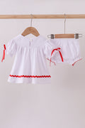 Dress your little one in festive fun with the White Santa Claus Smocked Bloomer Set. Featuring charming smocked details and a crisp white design, this set brings holiday cheer with a playful twist. Perfect for creating adorable holiday memories, it pairs comfort with festive style for your child’s joyful celebrations.