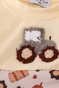 Yellow tractor french knot romper